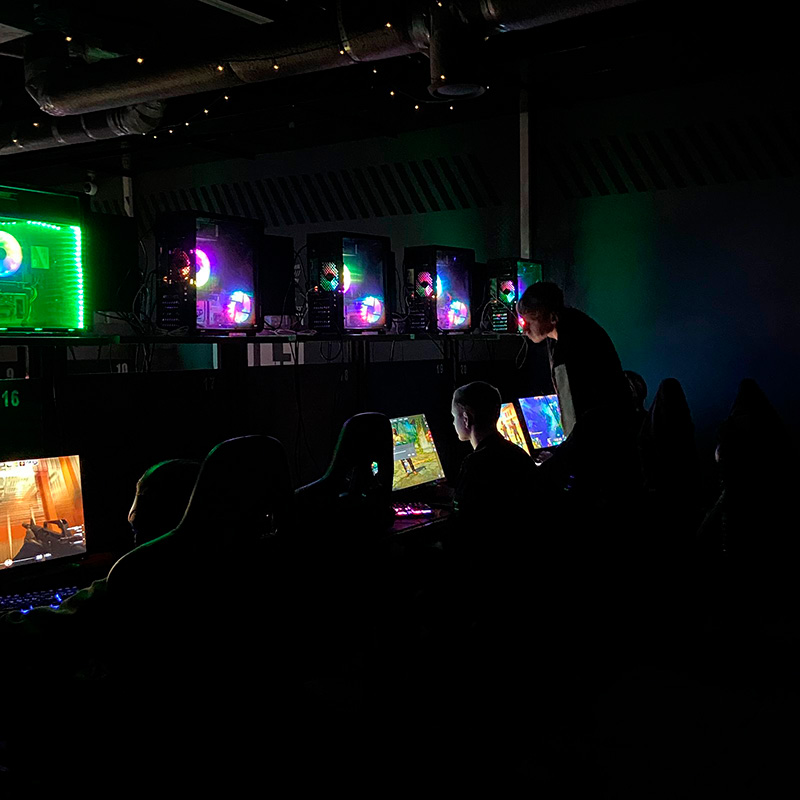 У нас вы найдёте уютные игровые зоны, атмосферный полумрак и быстрый интернет. Приходите с друзьями, устраивайте турниры, собирайте команду или играйте в своё удовольствие — у нас всегда царит дух соревнования и приятный драйв.